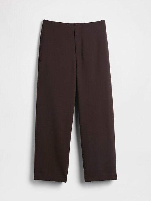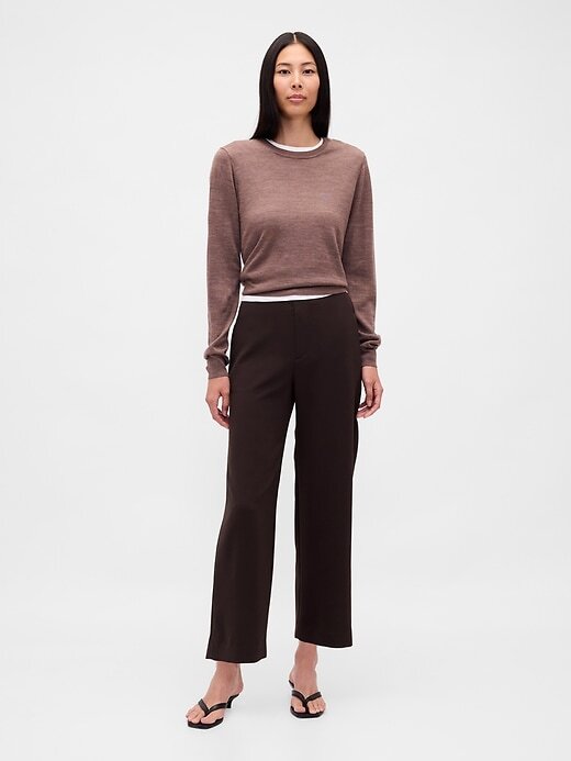 - Calça reta em sarja elástica e macia.