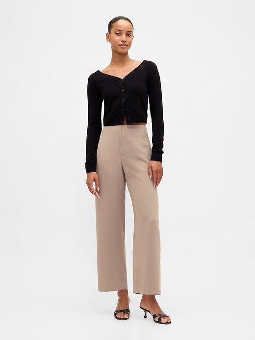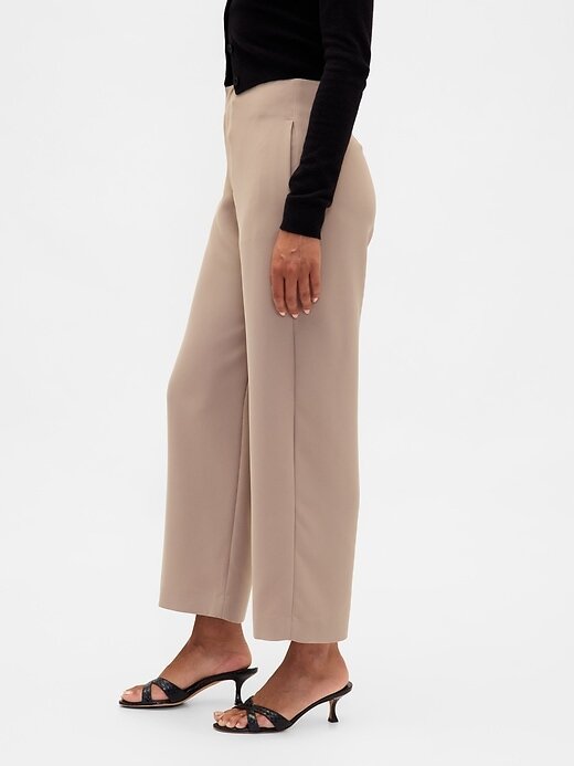 - Calça reta em sarja elástica e macia.