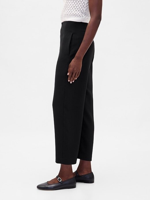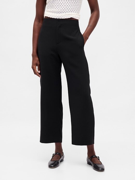 - Calça reta em sarja elástica e macia.