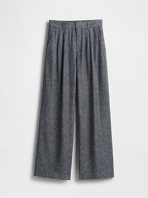 • Calças plissadas, macias e pesadas, em mistura de linho.