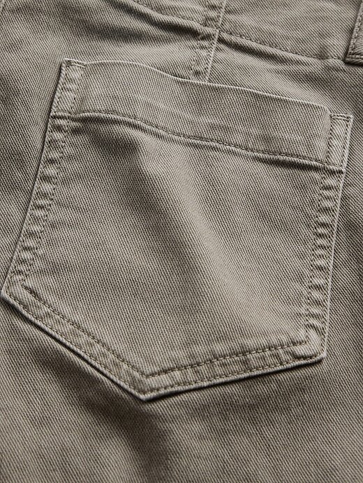 - Calça de sarja de algodão macia e elástica.