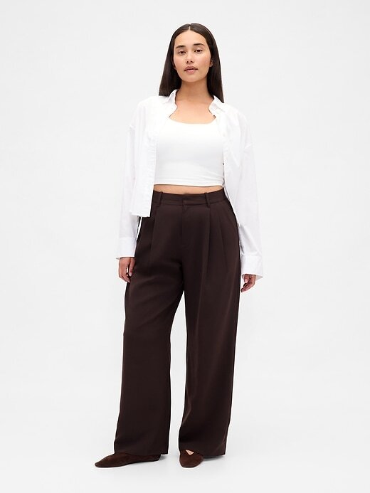 - Cintura elástica com fecho de gancho e barra ocultos, braguilha com zíper.