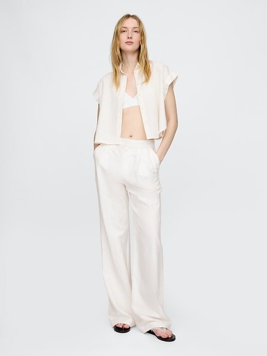 Camisa curta de linho misto