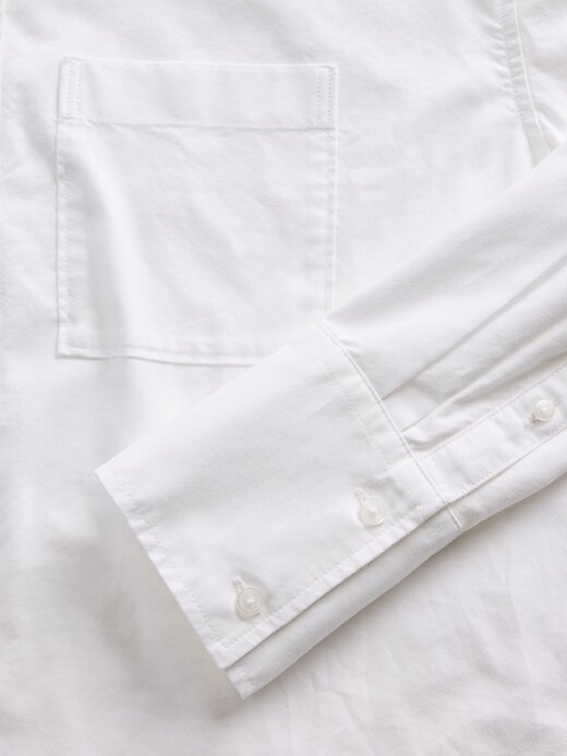 - Mangas compridas com punhos abotoados.