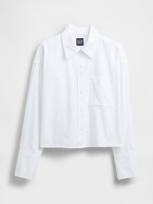 - Camisa oversized de algodão oxford macio com botões e comprimento curto.