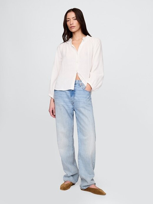 - Este produto foi produzido em uma fábrica que investe na igualdade de gênero e no empoderamento feminino. Por meio do RISE (Reimagining Industry to Support Equality) e do programa P.A.C.E. da Gap Inc. (Avanço Pessoal e Aprimoramento de Carreira), apoiamos as pessoas que produzem nossas roupas para desenvolver as habilidades, o conhecimento, a confiança e a resiliência necessárias para progredir no trabalho e na vida. Saiba mais aqui.