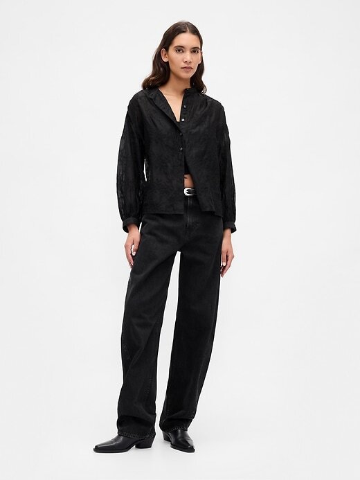• Camisa de voile macia e transparente.