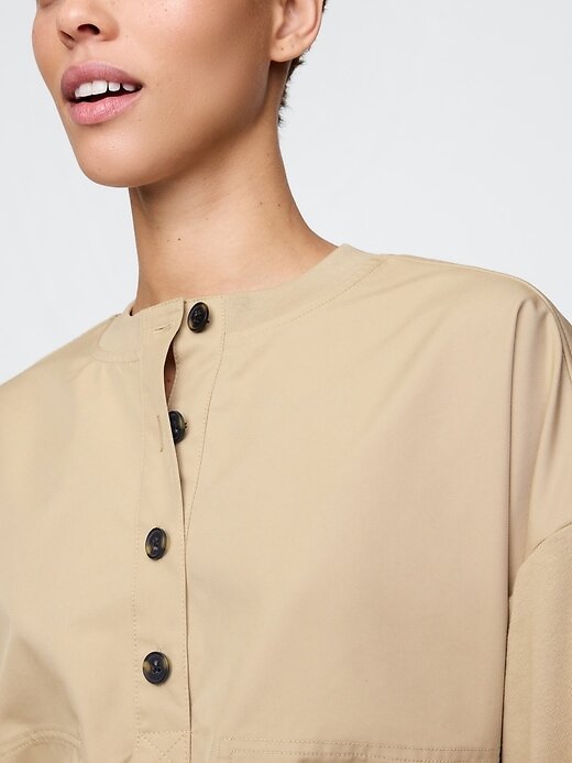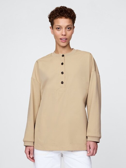 • Decote redondo com carcela de botões Henley.