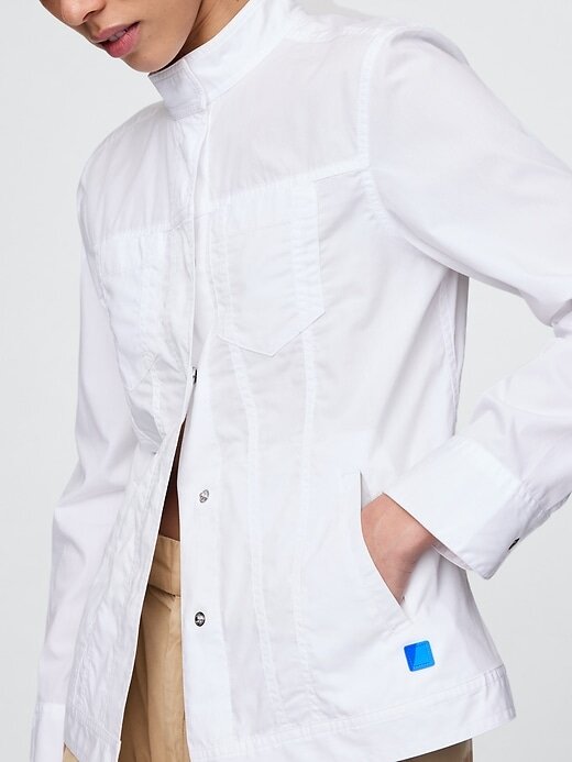 - Jaqueta tipo camisa de popeline de algodão orgânico macio.