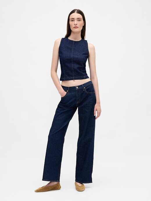 - Top cropped jeans autêntico e de baixa elasticidade.