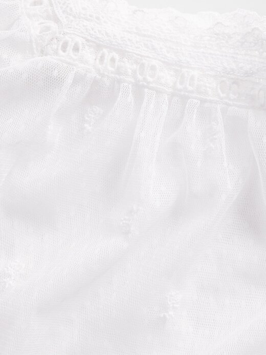 - Fecho de pressão com sutiã de crochê que mantém nos ombros.
