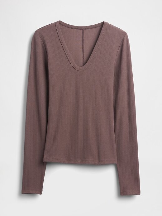 - Camiseta de malha canelada transparente, macia e elástica, com mistura de algodão e modal, com comprimento levemente cropped.