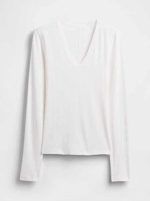 • Camiseta de malha canelada transparente, macia e elástica, com mistura de algodão e modal, com comprimento levemente cropped.