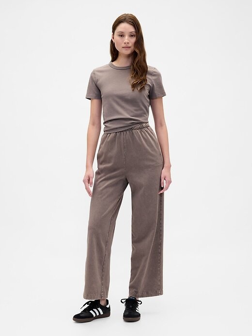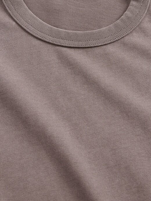 - Camiseta de algodão macio e pesado. Em um ajuste encolhido e ligeiramente curto.