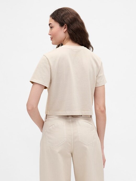- Camiseta curta de algodão orgânico macio e tingido na peça.