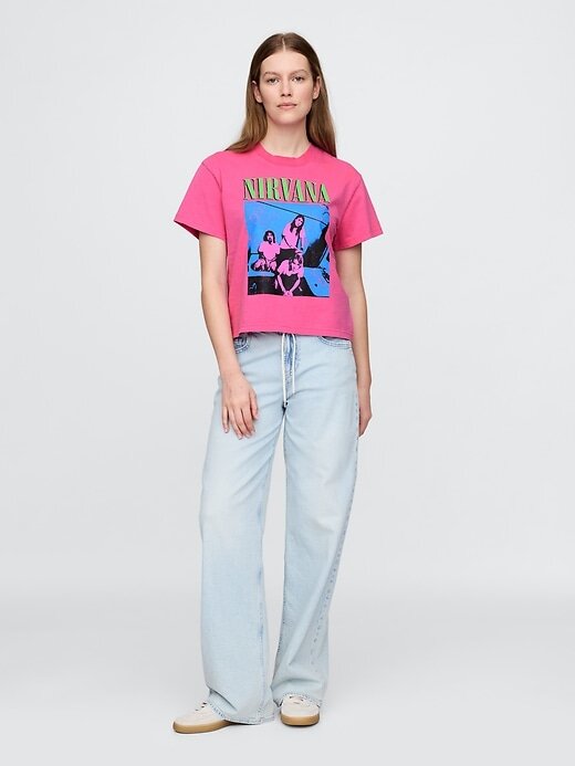 - Camiseta gráfica de algodão macio com corte levemente cropped.