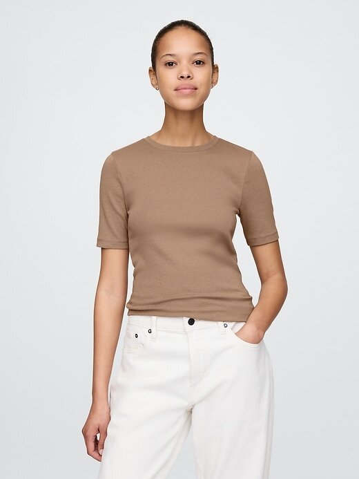 • Camiseta macia e elástica com mistura de algodão e modal.