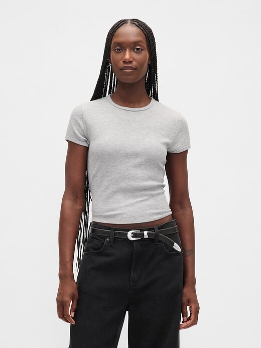 • Camiseta curta para bebê, macia e elástica, em malha waffle.