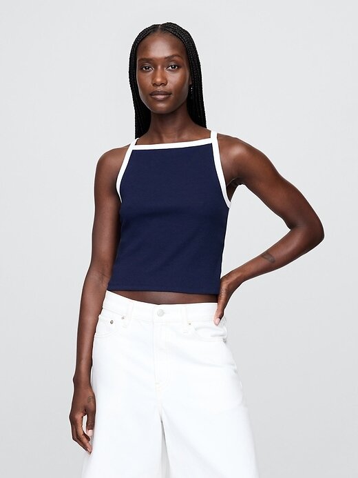 • Regata cropped em mistura de algodão e modal macia e elástica.