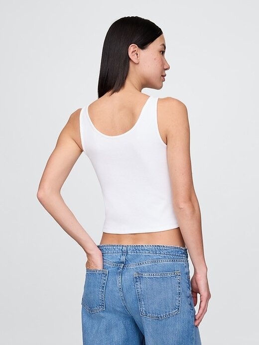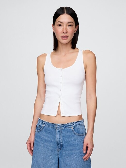 - Top cropped supermacio com botões na frente e em mistura de algodão e modal.