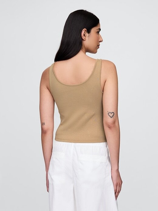 - Top cropped supermacio com botões na frente e em mistura de algodão e modal.