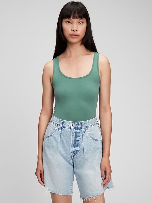 - Acabamento em malha canelada no decote e nas cavas.
