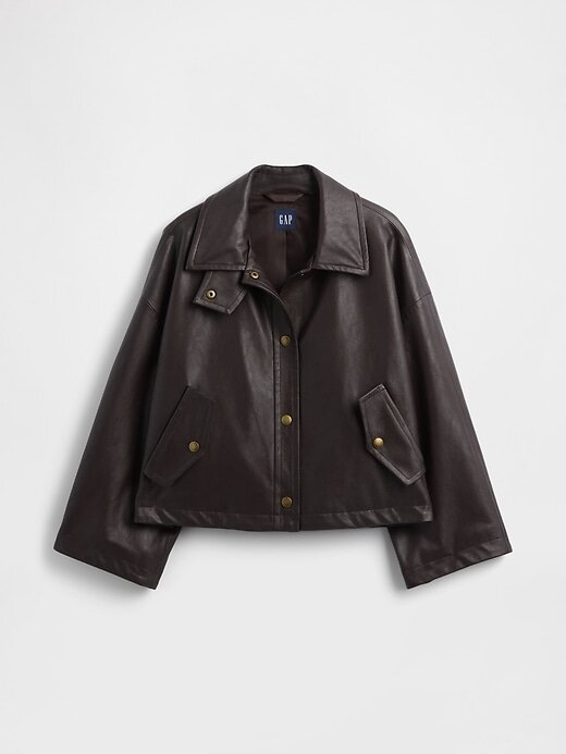 • Jaqueta de couro vegano macio. Com corte oversized e levemente cropped.