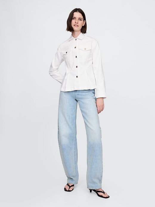 Um essencial do jeans modernizado. Pregas franzidas. Linhas fluidas. Em jeans autêntico e duradouro.
