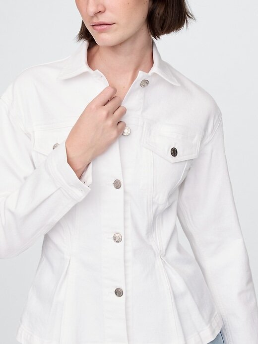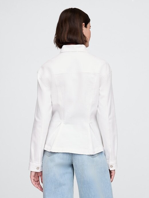 - Jaqueta jeans macia, pesada e com pouco stretch.