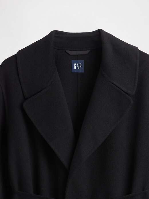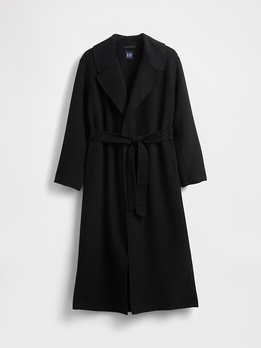 - Casaco longo e envolvente em mistura de lã macia.