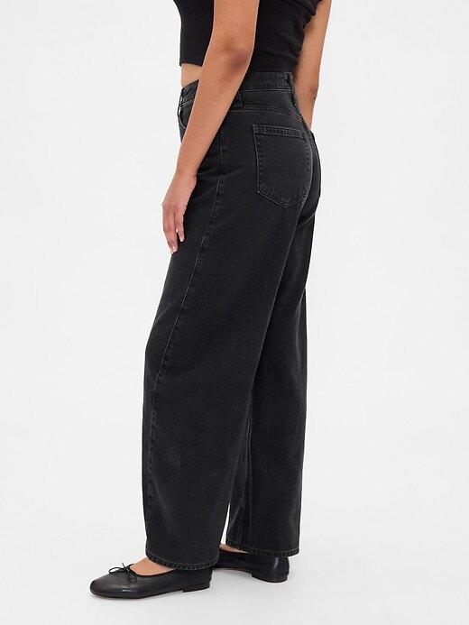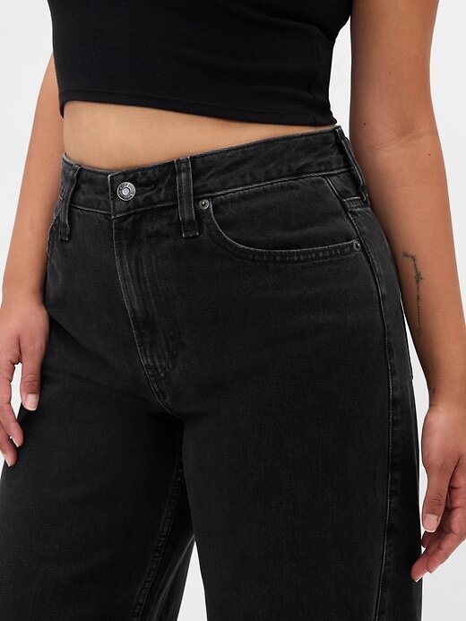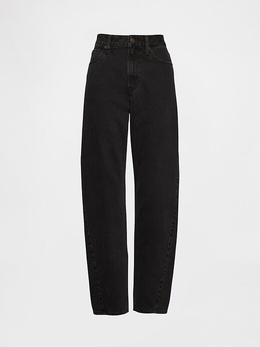 - Ajuste: Um jeans longo e largo, ajustado na cintura, com perna relaxada e tornozelo afunilado.