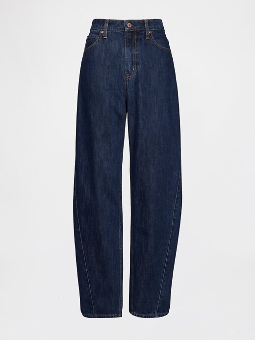 - Ajuste: Um jeans longo e ajustado na cintura, com perna relaxada e tornozelo afunilado.