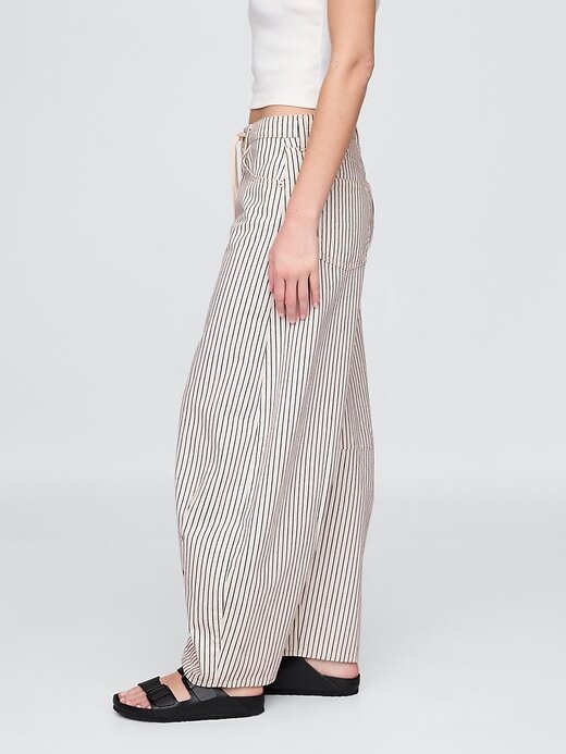 • Detalhes: Braguilha com zíper, estilo de cinco bolsos, cordões na cintura e Costuras laterais.