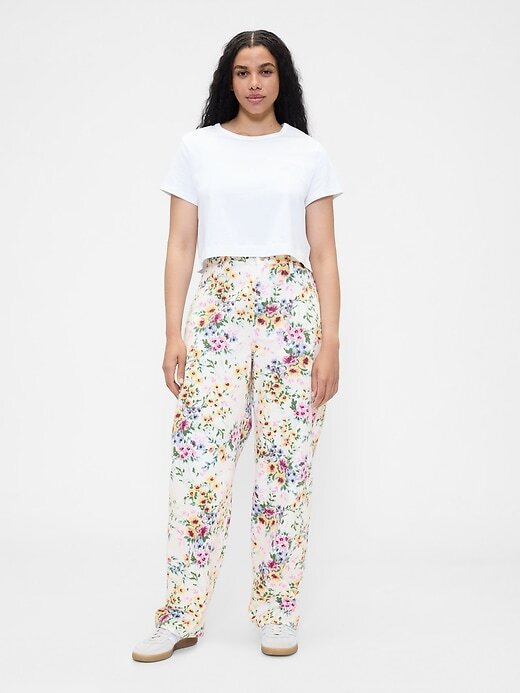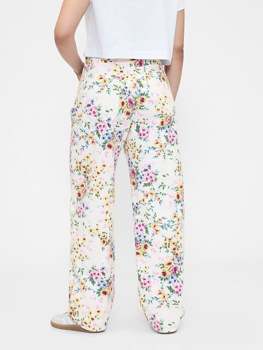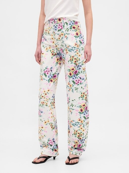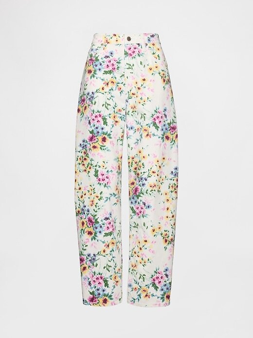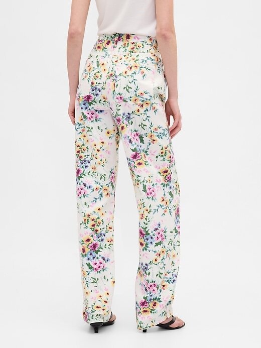 Calça jeans floral de cintura alta