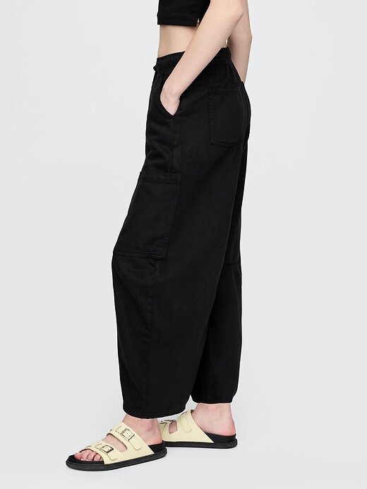 - Detalhes: Cintura elástica com cordões, estilo de quatro bolsos, costuras e bolsos cargo nas laterais.