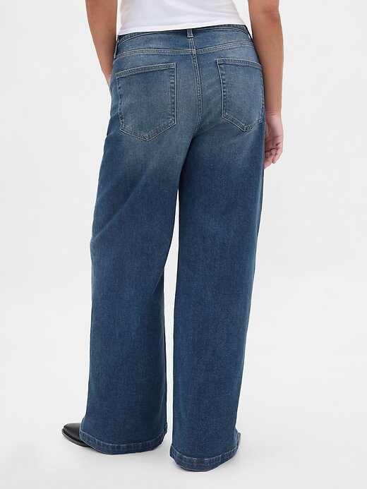 - Caimento: Ajustado na cintura e quadris com uma perna larga e relaxada em todo o comprimento. Este jeans tem um ajuste solto – diminua o tamanho para um ajuste mais justo.