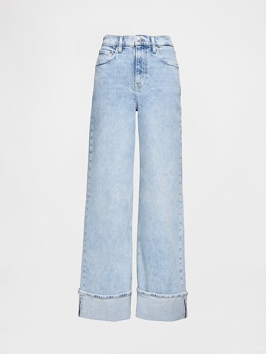 - Caimento: Ajustado na cintura e nos quadris com perna larga e relaxada. Este jeans tem um caimento solto – escolha um tamanho menor para um caimento mais justo.