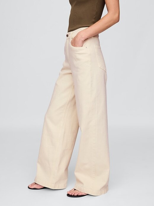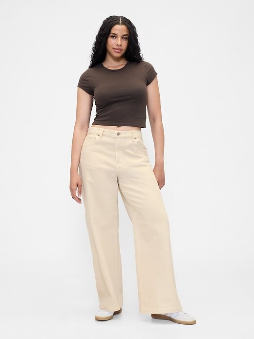 - Caimento: Ajustado na cintura e quadris com perna larga e relaxada.