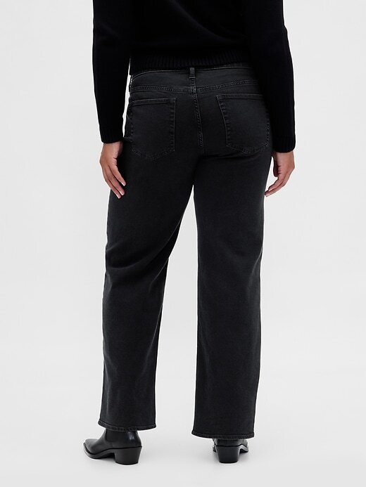 - Visual: Um jeans solto e clássico com lavagem preta.