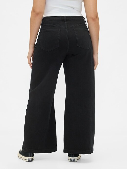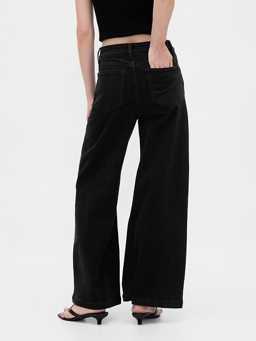 - Caimento: Ajustado na cintura e quadris com uma perna larga e relaxada em todo o comprimento. Este jeans tem um ajuste solto – diminua o tamanho para um ajuste mais justo.