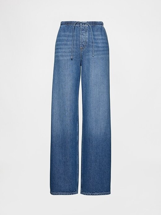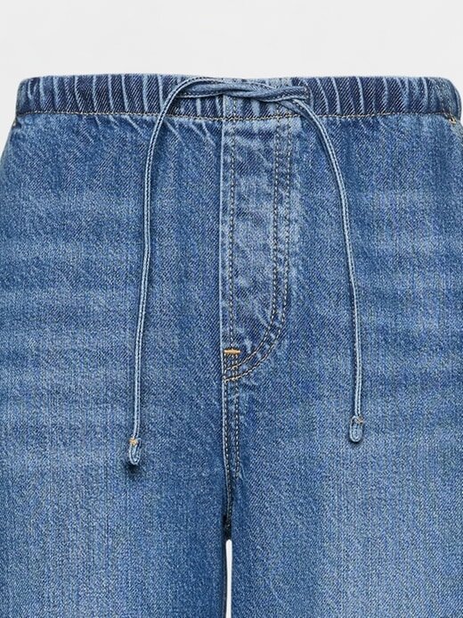 - Visual: Um jeans solto e prático com lavagem índigo média.