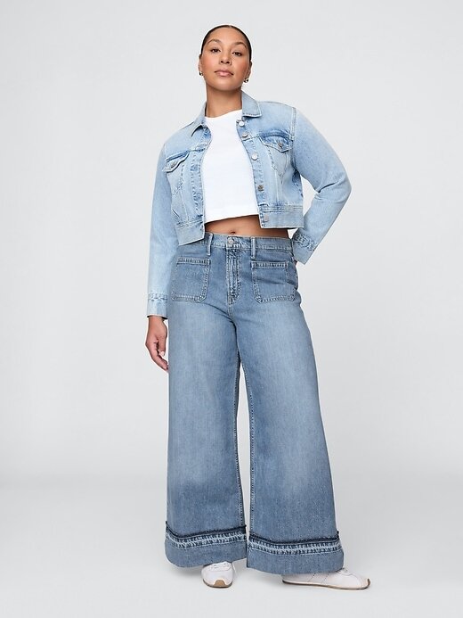 - Caimento: Um jeans largo e supermacio, ajustado na cintura e relaxado em toda a extensão.