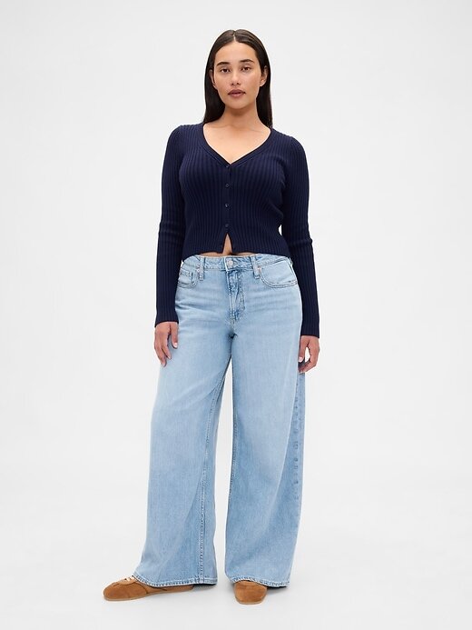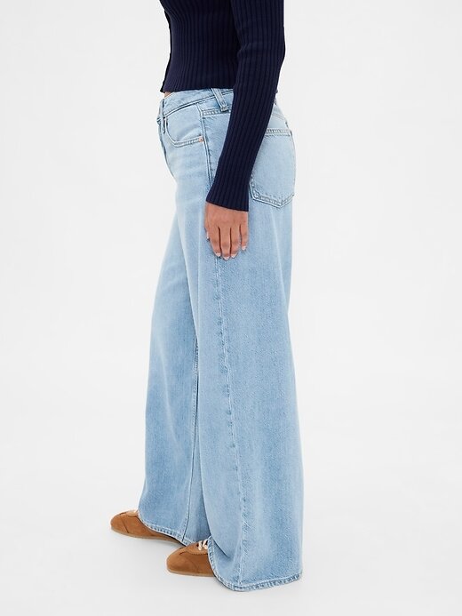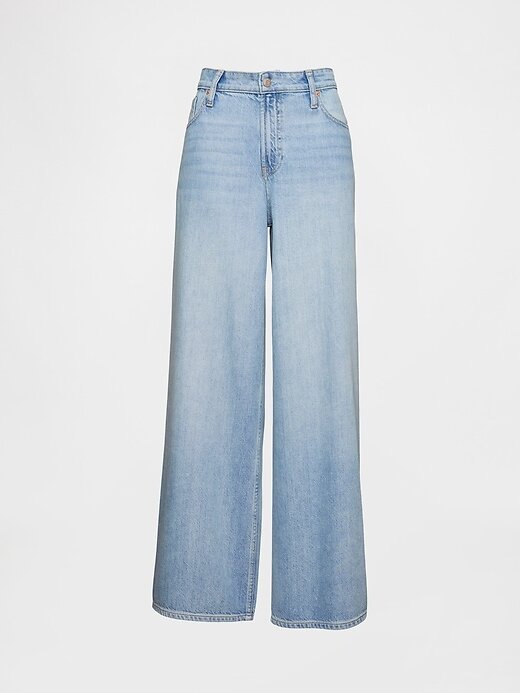 Calça jeans larga ultramacia e de cintura média curvilínea