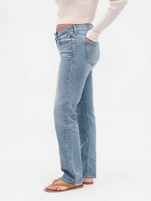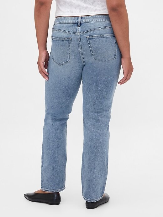 Calça jeans reta e justa curvilínea de cintura baixa dos anos 90
