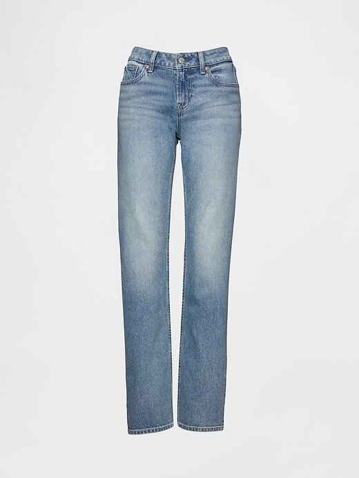 • Visual: Um jeans clássico de cinco bolsos em uma lavagem índigo média.