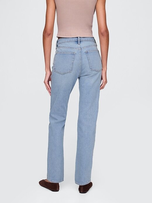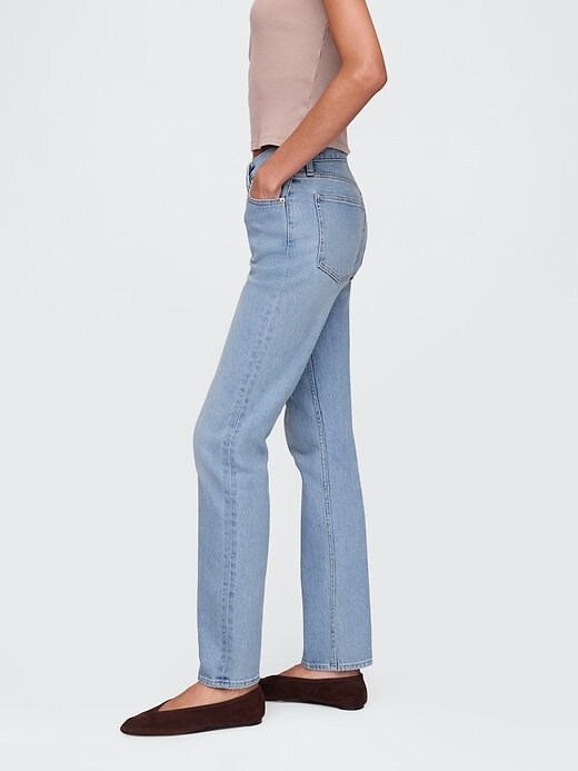 - Visual: Um jeans clássico de cinco bolsos em uma lavagem índigo média.