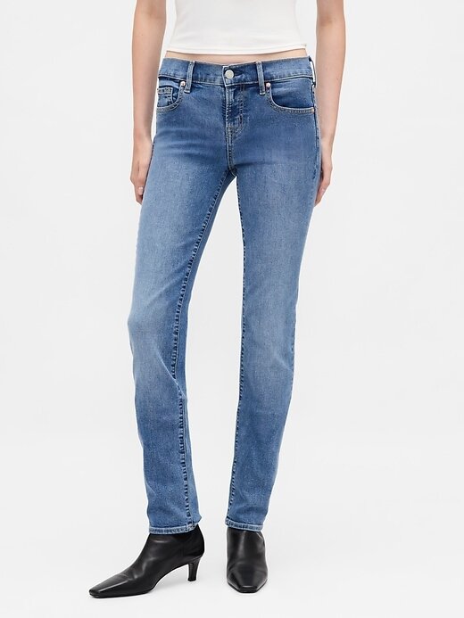 - Visual: Um jeans clássico de cinco bolsos em uma lavagem índigo média.