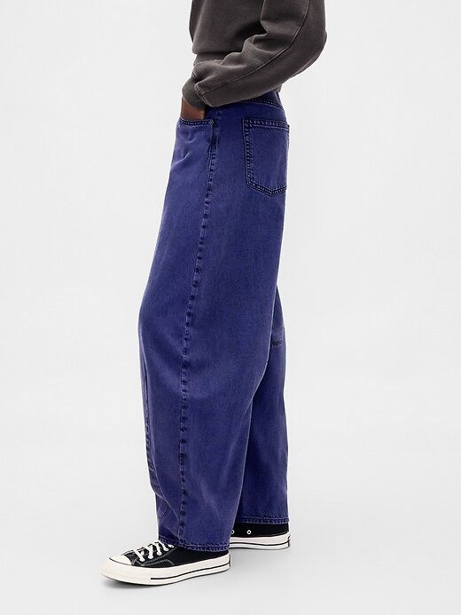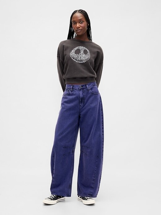 - Caimento:Um jeans longo com ajuste na cintura, perna relaxada e tornozelo afunilado.