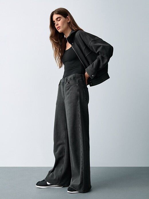 - Calça jeans baggy de moletom, macia e resistente, confeccionada em tecido french terry, com mistura de algodão.