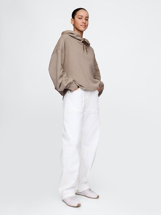 - Moletom oversized com capuz, confeccionado em moletom francês macio e pesado, confeccionado em mistura de algodão.